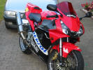 Original Höckerabdeckung, polierte Felgen, Repsol Aufklebersatz, B&G Auspuffhalter, MRA Rote Racingscheibe ohne Brennglaseffekt, Leo Vinci ABE Endtopf, Michelin Pilot Sport. Km-Stand am 18.07.2003: 15.435 km